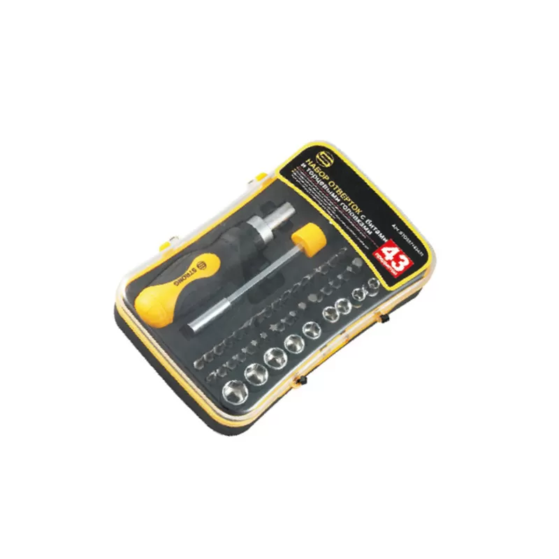 Set of Socket Heads and Bits with Reversible Lever Screwdriver