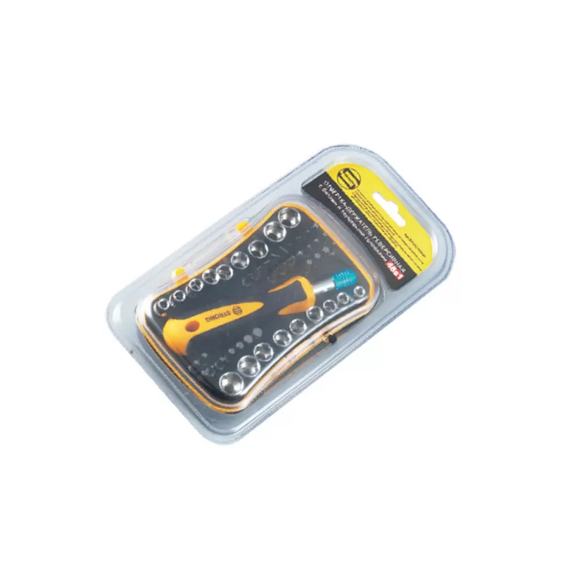 Set of Socket Heads and Bits with Reversible Ratchet Screwdriver